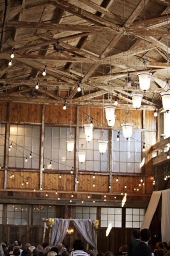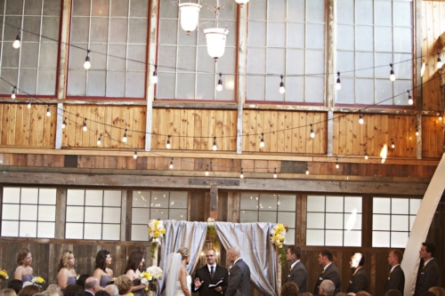 Its great when we can mix up our feature wedding style on Love & Lavender with this industrial wedding venue. Sodo Park in Seattle was an old factory built in 1907 that has been converted into a space suitable for hosting a wedding ceremony. The large indoor warehouse scale allowed for giant white curtains to hang on the walls, giving a soft and elegant feel to an otherwise steel and wood wedding ceremony space.