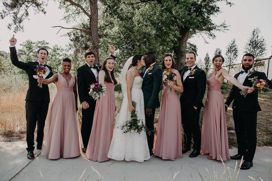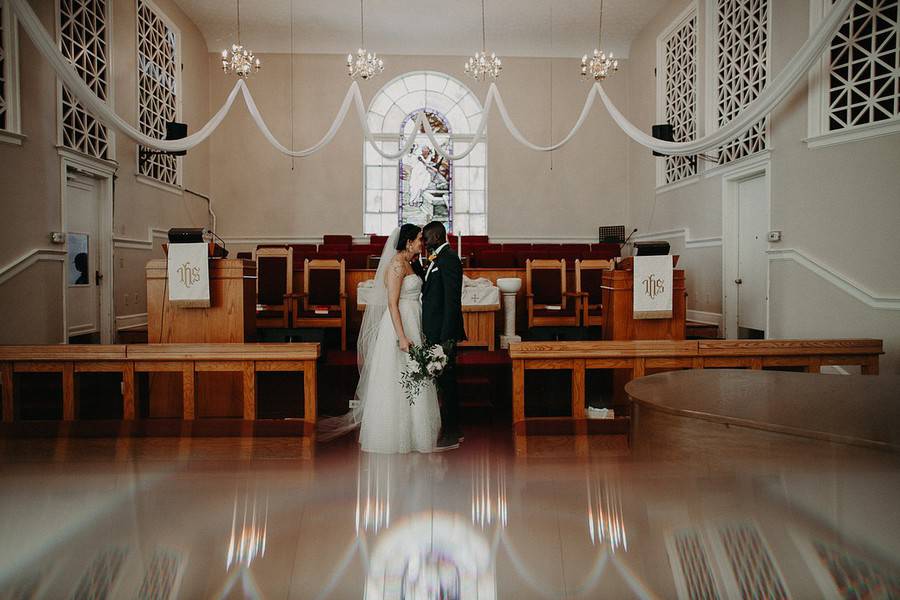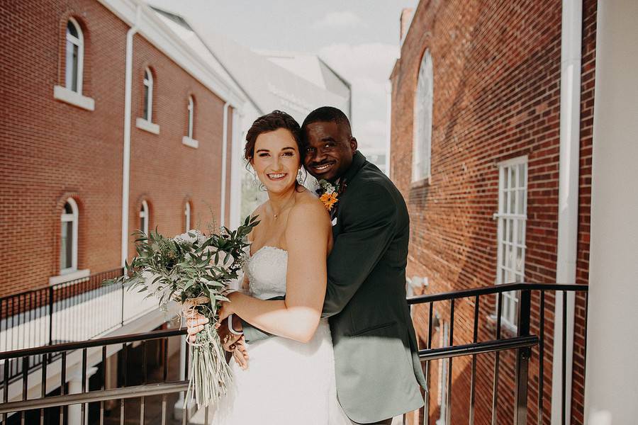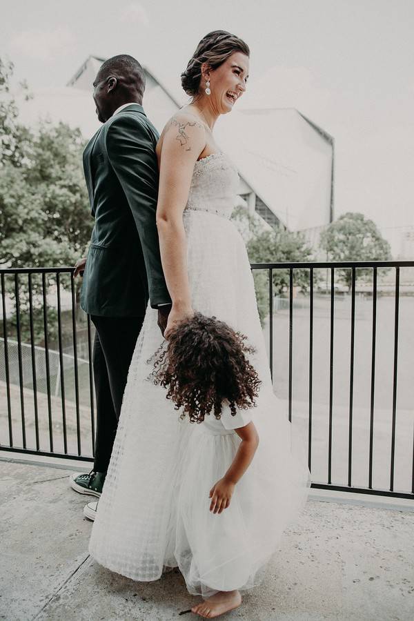 Q1: Tell us about your wedding! What was the inspiration behind your day? Did you have a specific theme, style or color palette? Did you incorporate any cultural or religious traditions in any part of your day?A1: We wanted our wedding to be very simple and pretty casual. We have a toddler, so making sure she could be incorporated and wouldn’t feel like she couldn’t touch anything was a big part of our wedding. We wanted lots of greenery and for things to look very natural. Since we chose our venue to be at a brewery, we knew that it would have a natural, open feel for people to bring their kids, be able to take their shoes off and have a good time. We are both pretty chill, casual people and so it fit right in with our personalities.Q2: Let’s talk wedding decor. How did you decorate your space for the ceremony and the reception? Was any part of the decor DIY?A2: Most of the decor was DIY, but there wasn’t a lot of it! We saved wine bottles and got some from friends to be centerpieces at the tables, and my cousin Andrew, who did our flowers, picked gorgeous flowers to fill them out. It was all very simplistic. The reception venue already had walls painted and decor hung, as it was a brewery, so we just made sure the tables had some nice touches to them. We didn’t want to over do it with the nature of the reception venue/space.Q3: What were the florals like in your wedding? Did you use flowers in any of your design elements like the bridal bouquets, centerpieces or ceremony backdrop? Did they play an important part in the overall style of your wedding?A3: My cousin, Andrew, did our flowers and I couldn’t have loved them more. We wanted a lot of greenery, but he added pops of color,  which made for beautiful flowers. We had flowers on some of the pews in the church, a few vases on the stage at the church, and on every table at the reception venue. We had bridal bouquets, boutonnieres for the guys, and our flower girls had flower crowns. The flowers were a big part of our decorations, because we kept things simple. They pulled together all of the outfits and made our reception venue looks super nice!Q4: Did you personalize the day in any way (food trucks, guest entertainment etc.)? What were some of your favorite parts of your wedding?A4: Our favorite part of the wedding was definitely the dancing. We are close friends with our DJ and told him the vibe we wanted. He was amazing! Most of our friends and family stayed until the very end (including our 2-year-old daughter who NEVER stopped dancing!). We also loved how comfortable it all felt. It was a space you could take your shoes off, relax, have a drink, and dance with your kid or friends. We wanted everyone to feel welcome!Q5: Let’s talk fashion. How did you both choose your wedding day look? Describe the looks in detail.A5: I (Lexi) do not like shopping at all, but when I went to Kelly’s closet, Kelly was amazing – she helped me find the best fitting dress ever. I had no clue what style I wanted, but she brought me all different styles and we finally found one that was perfect! It was very detailed with beading so the rest of my outfit was very simple – flats, simple earrings, and a plain, long, veil. Kwam took his outfit and fashion to another level. I told him I thought it would be really cool if he could find a dark, forest green suit to match our flowers. In typical Kwam fashion, he wanted his whole outfit to be a big reveal, just like mine, so he never told me if he found the color suit. His suit was fitted, forest green, and of course topped off with some high top, forest green converse. He was very true to his own style and looked amazing. Later after the reception started, we changed into traditional Ghanaian attire for the dancing, as Kwam is Ghanaian. Myself, Kwam, and our daughter all wore deep purple outfits. My daughter and I had dresses made for us, while Kwam wore a traditional Ghanaian long sleeve shirt. It was great getting to dance to a traditional song with all of Kwam’s family who were also wearing their traditional attire.Q6: How did you meet? Tell us about the proposal.A6: We were introduced through a mutual friend who I went to church with and Kwam works with. On our first date, he brought my daughter a toy, which I thought was very adorable and thoughtful. The date went as it would if you had a 1-year-old with you on a first date – there were diaper explosions, chasing her down, snacks everywhere, but my friend ended up coming to take her home for bed. We grabbed dinner and totally clicked. After that, we kept hanging out and getting to know each other better. He proposed in October 2018 at my parents’ house. Their deck was filled with sunflowers, which are my favorite, and my daughter handed me a box as I walked out. He asked me to marry him and I said Yes! It was a family affair!Q7: What was the most anticipated or special moment of your wedding day?A7: A really big moment for me was having our daughter walk down the aisle with my dad. It was really beautiful to see Kwam and his family totally welcome and love on her like she was their own. The father-daughter dance they shared was also ADORABLE. Everyone was laughing, including both of them! It was also really special to get to change into the traditional outfits and dance with Kwam’s family.Q8: Do you have any wedding planning or marriage advice that you’d like to share with other couples planning their day?A8: Remember that the end goal is to get married to the person you love. A lot gets thrown at you to distract you from that, things do not go to plan, but if you just go in with the mindset that getting married to who you love is the best part, then it makes the day a lot less stressful. Also, a planner did help organize all the things for us which was a lifesaver!!