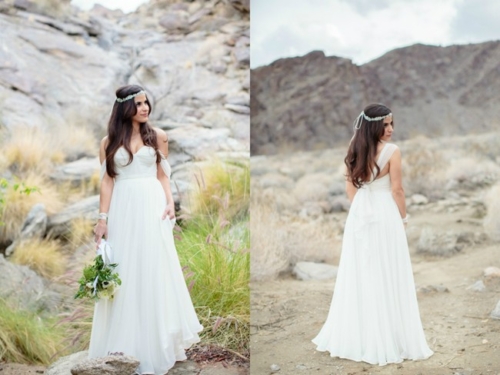 The overall wedding theme was Bohemian, Grecian, natural, simple and whimsical in the desert garden.