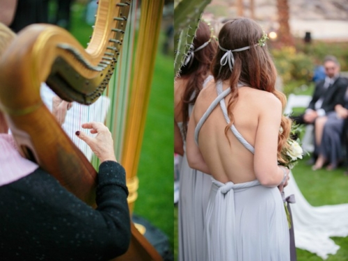 “The harpists played three songs: ‘Here  Comes the Sun’ by the Beatles, ‘Kissing You’ by Des’ree (Romeo + Juliet) and ‘Flightless Bird American Mouth’ by Iron and Wine. The first dance was to Ellie Goulding’s version of ‘Your Song.'”
