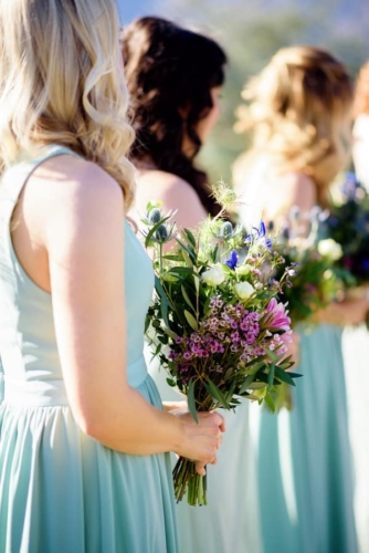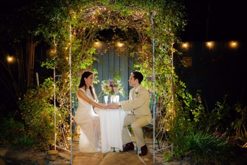 Photographer’s Remarks: “I first met Lindsey in the middle school we attended in Ojai, we took honors classes together, ran cross country in the horrid heat, drifted apart, then came back together through Facebook and bonding over our dogs. “During Cherry Blossom season we went up to Portland to visit them and take some beautiful engagement photos and get to know them both as a couple.  They’re silly and cute, bring out the best in one another.  Family is everything to them and they’re so proud to have finally made things official.” Bride’s Comments: “Eric and I met in grad school, studying Geography. We literally needed maps to find each other. But once we did, it was apparent that we were a good match and would become more than friends. We took our time, dating for more than five years before getting engaged. But we did a lot; we built a life together. “We earned our Masters degrees, moved into an apartment in Woodland Hills, California, adopted our dear pup Snowy, and eventually took on a great adventure and uprooted to Portland, Oregon. “As we built our life together, our relationship grew stronger. We have lifted each other, not just through difficult times, but all the time. With our particular strengths, we challenge and bring out the true potential in each other. We are complementary and together, are better people.Our wedding was truly a celebration of our relationship. “We knew from the start that the most important thing about our wedding was to be surrounded by our closest family and friends. We even tried to choose vendors with whom we have a personal connection. “It was an honor to share our love in front of the people we care about most.As far as the details, we knew we wanted our wedding to be unique and personal. We made decisions that would reflect our personalities and represent us as a couple. In lieu of a cake, we had our favorite desserts: pie and cheesecake. The tables were named after some of our favorite Oregon breweries, and the vintage china place settings were hand-picked from various secondhand stores around Portland. “With the help of our friends, family, and wonderful vendors, everything ended up coming together beautifully. It was a night filled with heartfelt and witty speeches, outstanding food and drink, and particularly memorable dancing. “From dancing into the reception with our wedding party to the theme song from Friends, to our sentimental first dance, to turning around to find Grandma cutting a rug, it was a night that we will remember fondly for the rest of our lives.”Gallery
