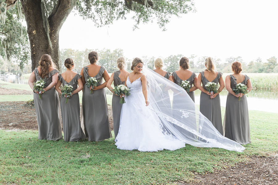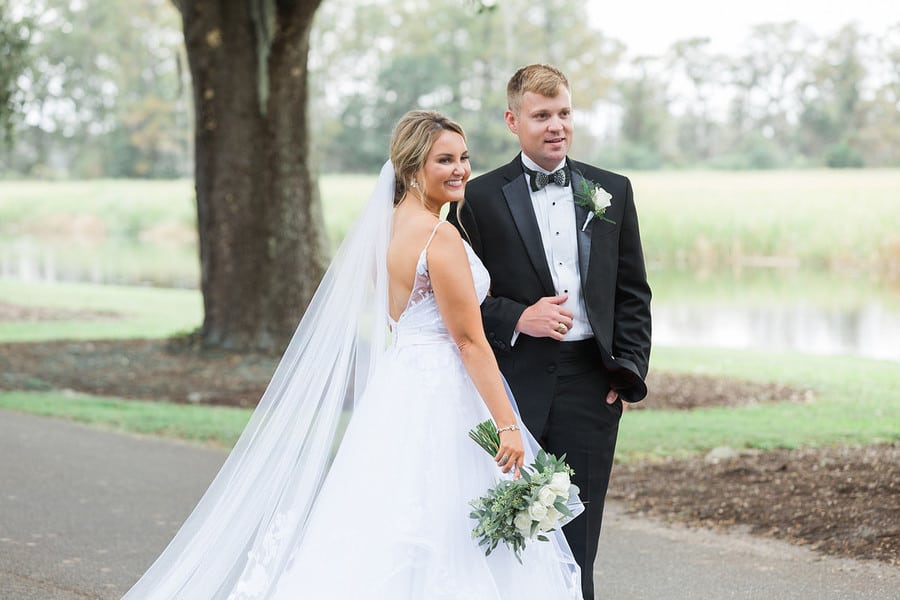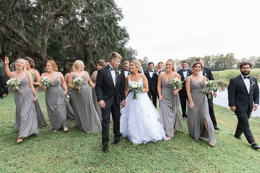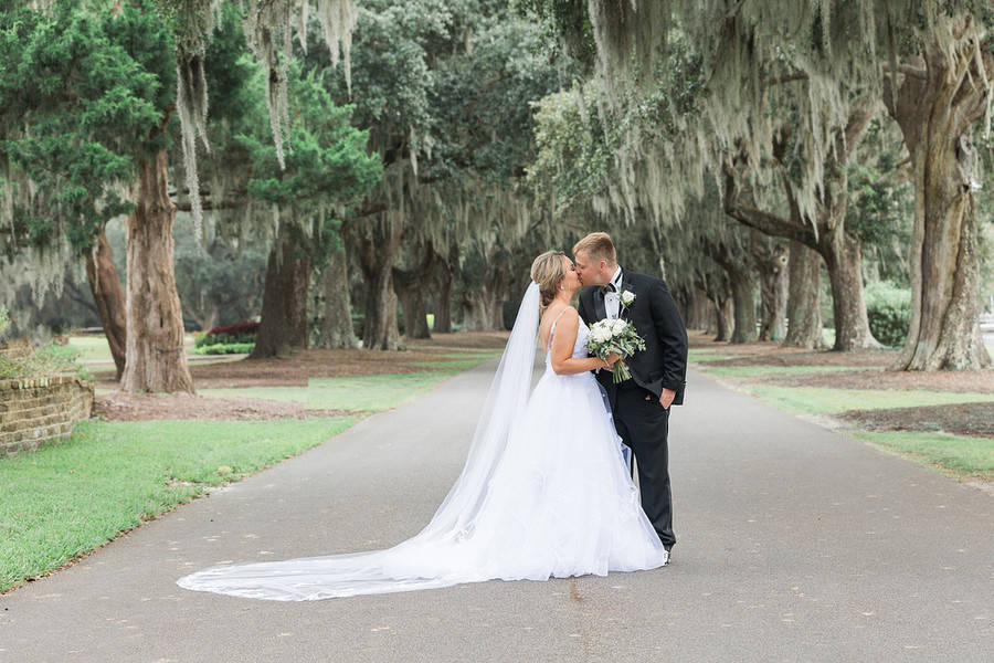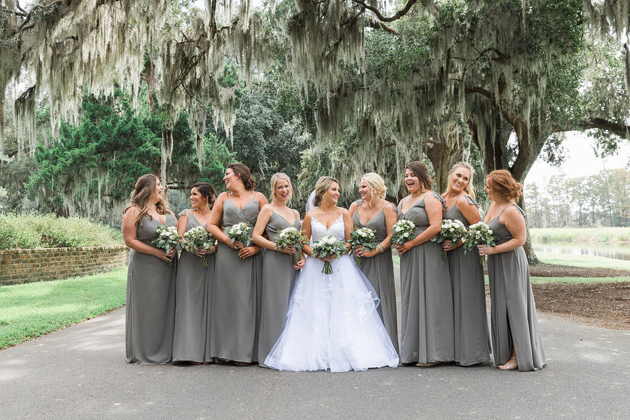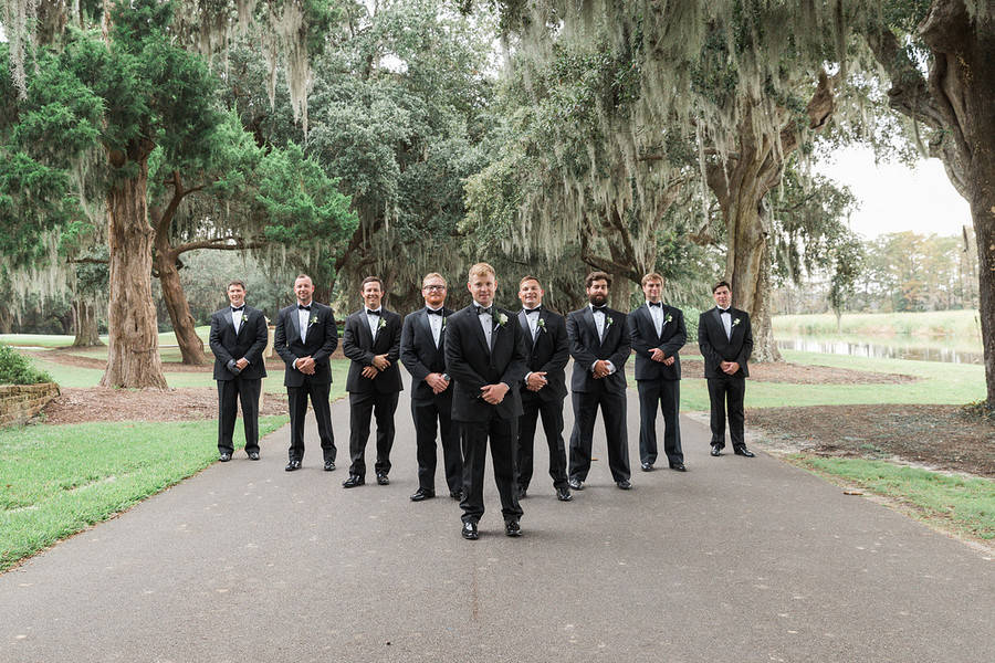 This was a beautiful, Southern wedding beneath mossy oaks at the Caledonia Club in . Lots of greenery, classic color palette and gold accents.