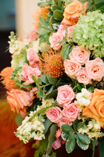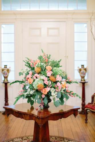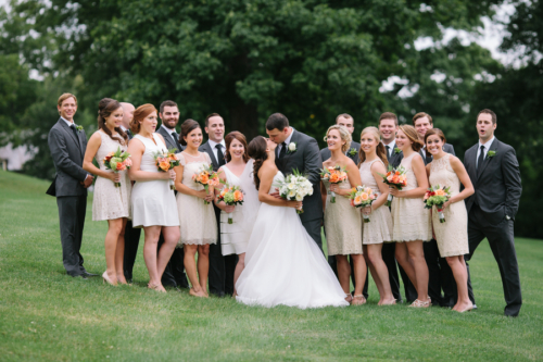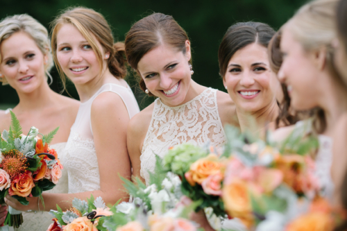 “Margaret was a classic bride determined to have fun and Chris was a dapper groom unrelenting on the dance floor. Bright corals and pinks popped against delicate creams and off white bridesmaid dresses, just like laughter resounded from the bridal party as they enjoyed time together before the ceremony and after the first look.”