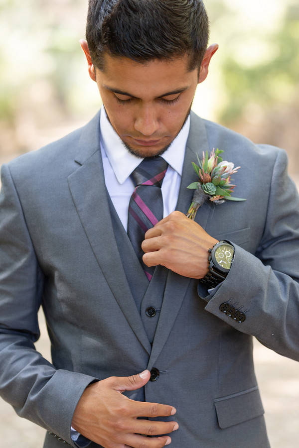 A5: Im not super sure HOW I chose my dress but I went dress shopping with friends and had NO expectation NO dream dress nada. I tried on my dress at a super cute place (Kates Bridal Cottage) This was the first wedding dress I had ever put on. I knew in my head as soon as I put it on that it was the one for me. We tried on probably 50 more that day and still ended up with the very first one from Kates.For Julio we knew we didn’t want the traditional tux because the style tends to be longer jackets in the back, and the pants aren’t quite as tight on the legs as he was hoping for. We ended up going with his style of every day clothing and got him a suit, vest and jacket from Express. It was much more fitted and looked great!