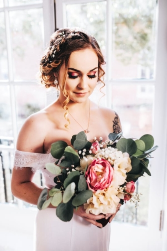 “When I begin the process of putting this styled shoot together, the only thing that I knew I wanted was I wanted it to be bold yet simply done. I started looking and looking and looking some more at inspiration, but everything seemed so “already done”. I wanted something that really spoke to my personal choices, and yet could be something other brides would connect to. Thus “Mauve and Gold” came to mind. It was soft, it was romantic, it was bold and colorful, and everything a bride could hope for.”Gallery