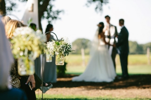 - Love the Sheppard hooks lining the aisles with jars filled with florals.