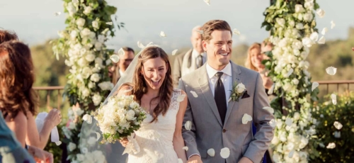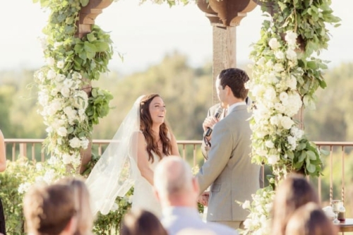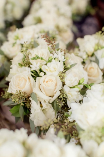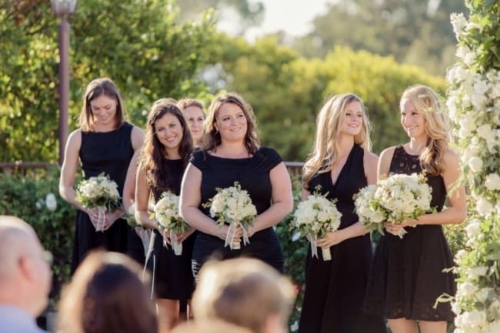Today’s bride and groom decided to loosen the rules for wearing black, and let their bridesmaids wear sleek mismatched black dresses! Elegant and romantic, this beautiful cream floral wedding is an affair that truly stands out – as if it were a movie set!