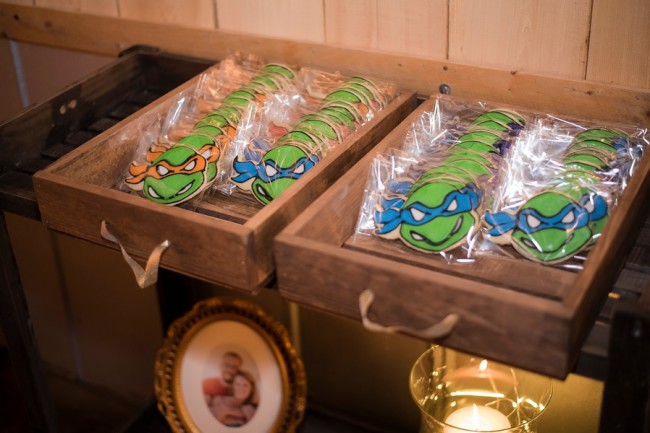 Wedding cookies in the form of mutant ninja turtles, why not!? We love weddings that are infused with details that are personal and unique. We’re not sure of the exact story behind the cookies below, but certainly there is something special about these green turtle characters that this couple felt the need to include them on their big day.