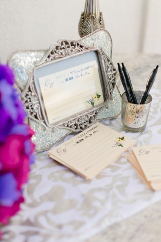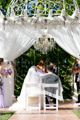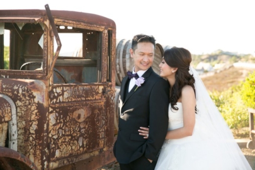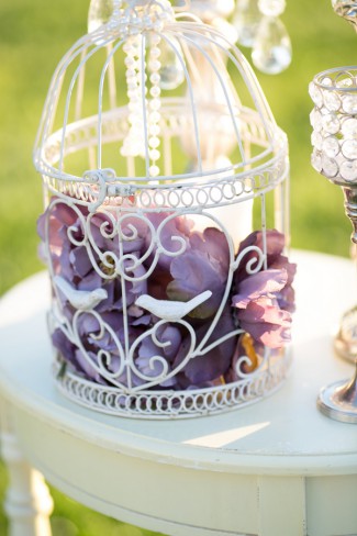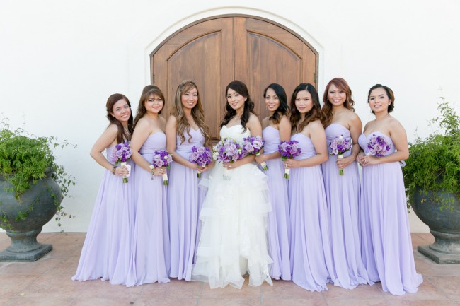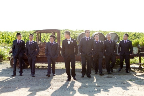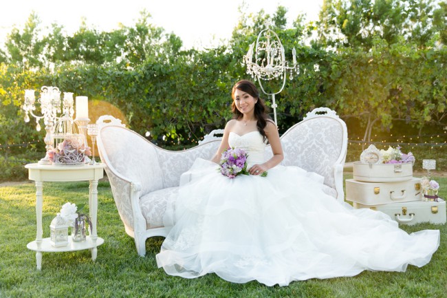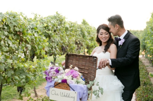 Many thanks to Leah Marie Photography for submitting another wonderful vineyard wedding. We featured a superb fall picnic wedding a few weeks ago that we simply LOVED! And today’s wedding provides equally stunning photo eye-candy for those who love a SoCal vineyard soiree. Purple hues, an outdoor alter chandelier, and vintage decor … what’s not to like?