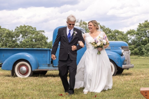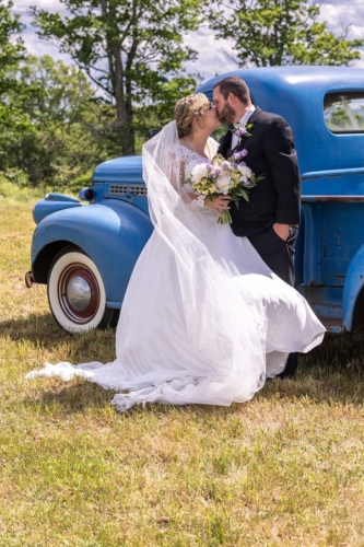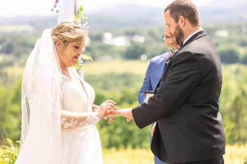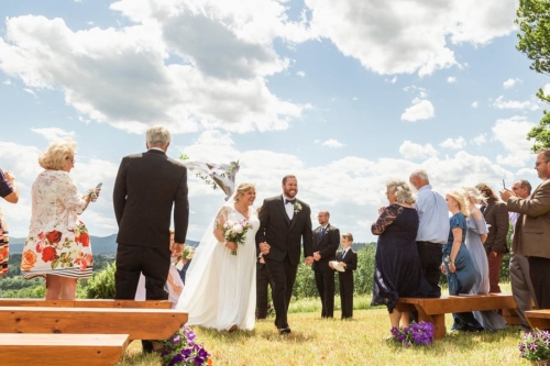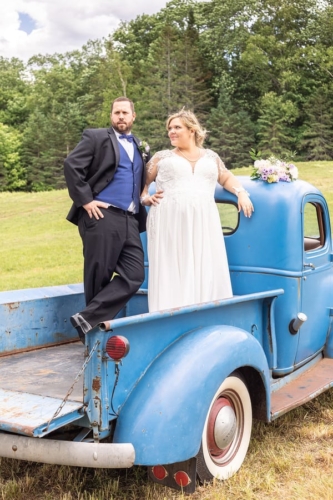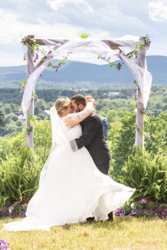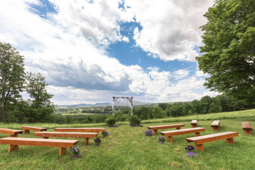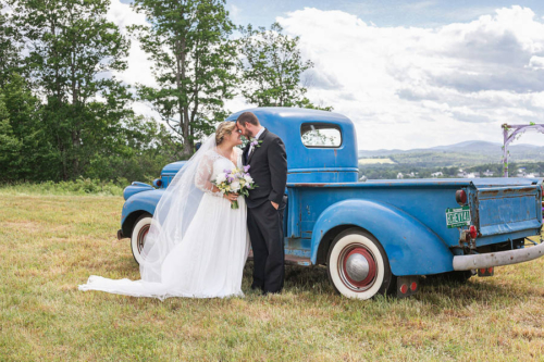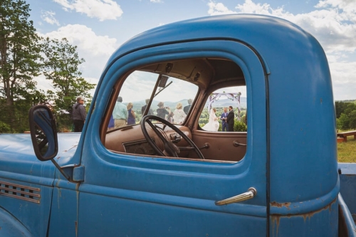 Melissa and Josh had the perfect Vermont day to celebrate their love! Surrounded by family and friends they said their vows with views of the mountains and entire valley below. The setting was stunning and so was the bride who arrived to the wedding in her grandfather’s vintage blue truck. Her brother and his husband hosted the reception where dining and dancing ensued. It was a fun day filled with children’s laughter, celebratory bubbles, and lots of love.