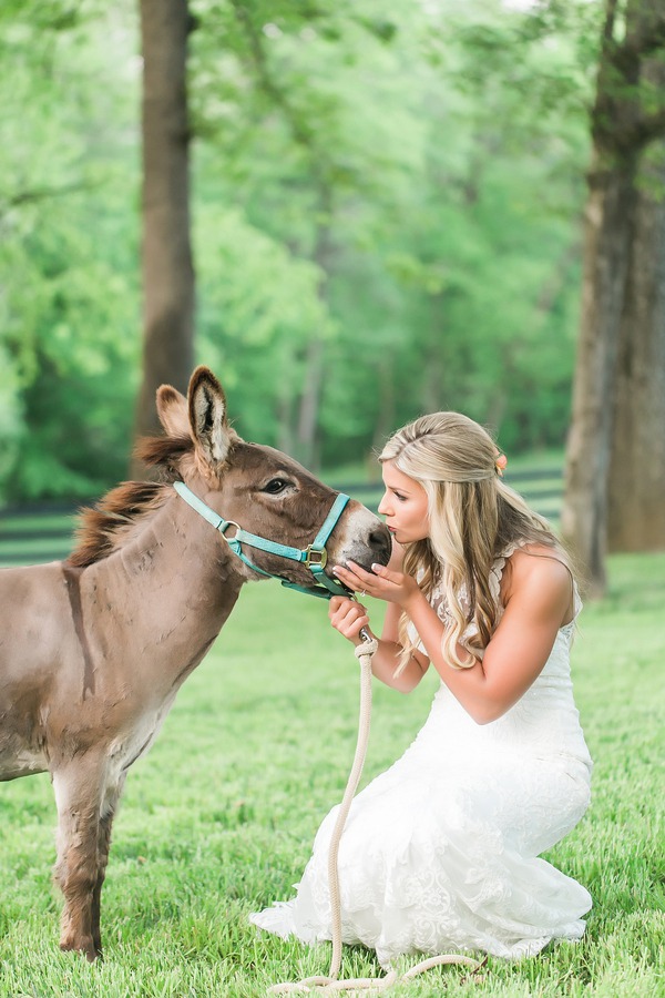 Photographer’s Remarks: “Meredith and Sampson have a fine taste for sophistication, and they both love their southern charm. For their wedding, little details told their story throughout the day. Meredith wore some wedding cowgirl boots, and had photos done with her pet donkey that was gifted to her during their proposal, while Sampson was given a bird feather from each groomsman from a hunt they did together.”