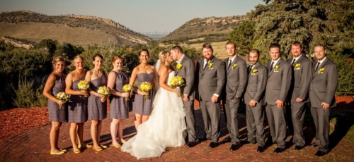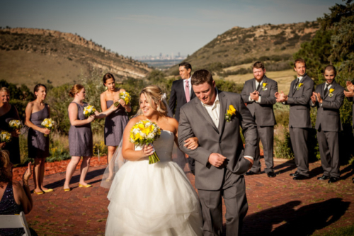 “When we walked inside, we immediately commented that it matched everything we wanted for our day. While the house is large and stunning, the interior feels cozy and lived in – the perfect balance of casual elegance. Everything was intentionally chosen to signify contrast, from the colors (yellow and grey) to Chad’s outfit (a formal tuxedo without a tie). Our ceremony took place outside with an incredible view of downtown Denver. The mash-up of the beautiful foothills against the backdrop of the city felt like a fitting distinction.”