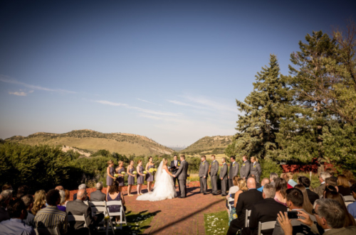 The bride and groom had an outdoor tent wedding at The Manor House in Littleton Colorado. This historic manor dates back to 1914 and has entertained many guests, including Presidents Theodore Roosevelt and William Howard Taft.