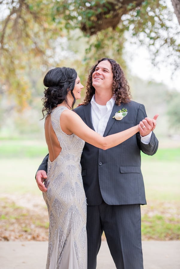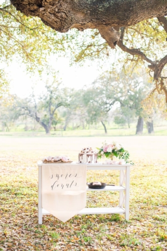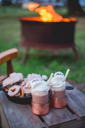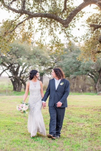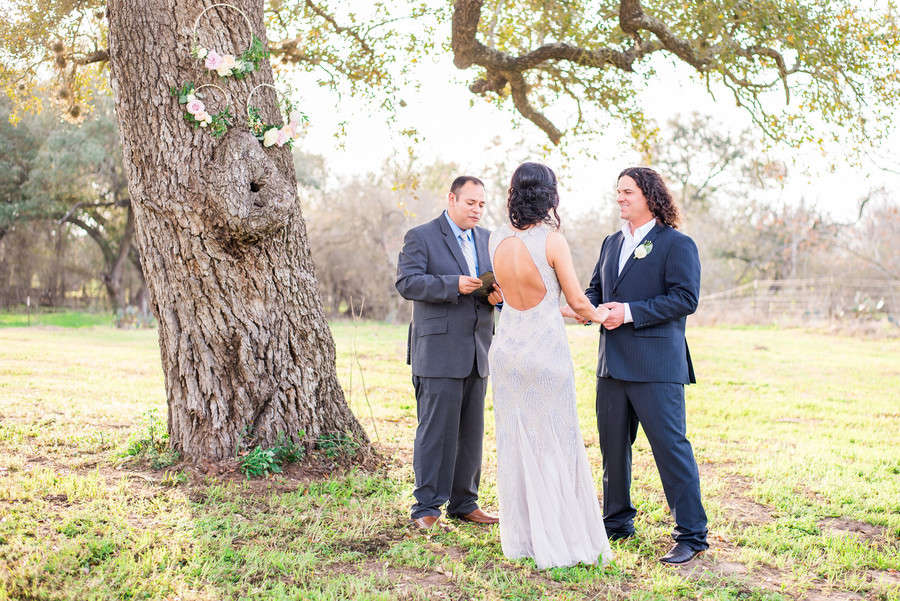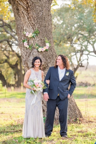 Photographer’s Comments: “The elopement that took place for Mindy & Dustin was truly representative to their lifestyle. Simplicity & elegance at it’s finest with a hints of blush in bouquets, subtle grey hues and glam that elevate the ambiance of the outdoors. “Mindy & Dustin have been sweethearts for years and wanted to elope in order to truly enjoy their intimate wedding day. To maintain the anticipation of a traditional wedding, the couple had their love letters submitted to a calligrapher for their special unveiling moment prior to the ceremony. These letters would not only be a way to transport their messages to one another for that day, but to be framed in their home to tell their story for every day after. “Along with sharing these special moments, Mindy & Dustin also took their vows among their closest family and friends, total of 15 people or so. As there family did join to witness their marriage the element of the elopement continued after the ceremony with a private first dance, a delectable meat and cheese tray, s’mores cake and s’mores donuts! Mindy & Dustin ended their evening of celebration with an intimate campfire overlooking the Texas Night. A way to reflect on their elopement and to look forward to their upcoming adventures in their new marriage. Custom hot chocolate drinks were made for the new Mr. & Mrs. special in their honor.”Gallery