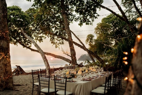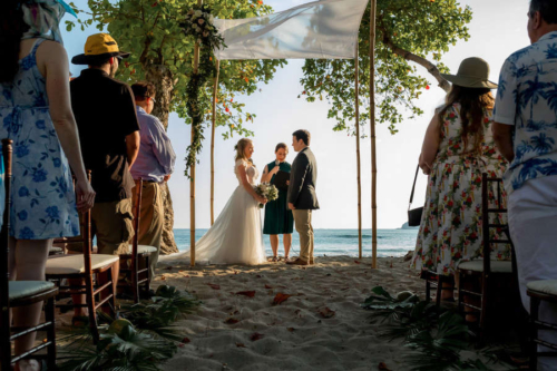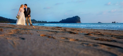 Photographer’s Comments: “Will and Miranda didn’t want your regular wedding photos. They were very interested in trying new things and branching out into creative wedding photography. One of their first questions to me was about both my photography and working style. “Will and Miranda met in 2014 on a camping trip in the Adirondack Mountains and it changed the course of their lives. Miranda’s friend, Sarah, had met Will a few weeks before on top of Half-Dome Rock in Yosemite and invited him to join Miranda, Sarah, and Sarah’s boyfriend on the trip. “Obviously, Will and Miranda love nature and this is what prompted them to visit In February of 2017. They were awestruck by the stunning vistas and fell in love with the welcoming nature of n culture. “They wanted to have a small wedding with their most treasured friends and family in attendance. They also wanted something unique and close to nature, just like their meeting had been in Yosemite had been. “Manuel Antonio fit the bill perfectly and it gave them the chance to share with friends and family whom they knew would also love the country. “Like many couples who come to get married in Manuel Antonio, they opted to have the ceremony on the beach. There’s a specialness to saying “I do” to the sound of the surf that is unparalleled. As an extra special touch, Sarah, the friend who had facilitated their meeting, was the officiant. “Unlike most couples, however, they decided to have the reception on the beach as well! Instead of your typical ballroom dance floor they built a bonfire and enjoyed dinner to the backdrop of the rolling waves. A bonfire was more in keeping with their unique style of wedding and love of nature. “The decorations were exquisite and looked like something out of a fairy tale. Strings of lights graced the trees around the dinner table and lent a special glow to the evening. “Getting some creative photos with the bonfire was so important to them that they opted to scale back on the getting ready shots. They wanted to have plenty of time towards the end of the night to enjoy the fire and get some fun shots.”Gallery