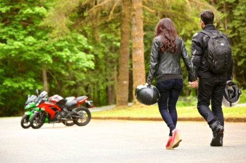 Today’s motorcycle engagement shoot may be short in length, but it is hugely important to me because one of my dearest girl friends is the bride-to-be! I have yet to hear the entire story of how Mario popped the question – due to technical difficulties over Skype. What I do know is that it took place in the romantic setting of Deer Lake Park (Vancouver, Canada) in a canoe!