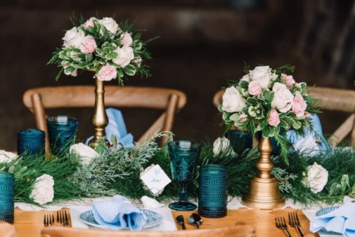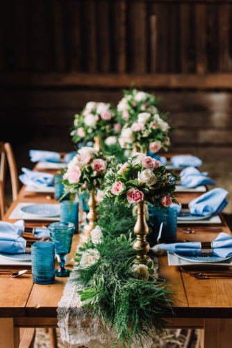 Comments: “The inspiration for this romantic no fuss wedding was the fresh crisp air that blows through the mountains during the sweet return of spring. Crisp mountain air that is sweet with the smell of new life brings the first new life to the forests. “The soft florals mixed with dark greenery brings you back to the mountain forests. The Adirondacks also has an air of elegance that sometimes gets lost in the birch bark and pine cone decor and we wanted to show a different look that was effortless yet romantic and inspired.”Gallery
