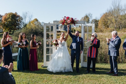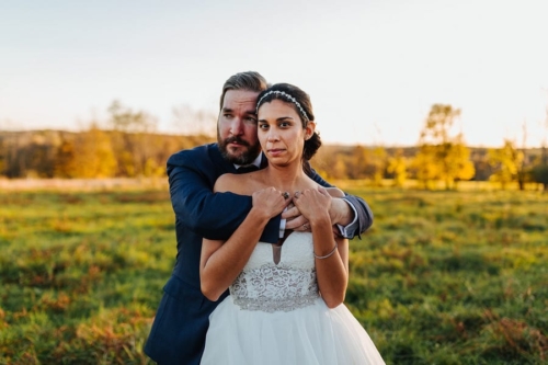 Photographer’s Comments: “Blake and Myri are both creatives and had a really beautiful vision for their day. They were married at Fox Hill Farm in Honesdale PA. We got one of the best sunsets of the fall and they were so happy to have a moment to snuggle up and just enjoy that they were just married!”