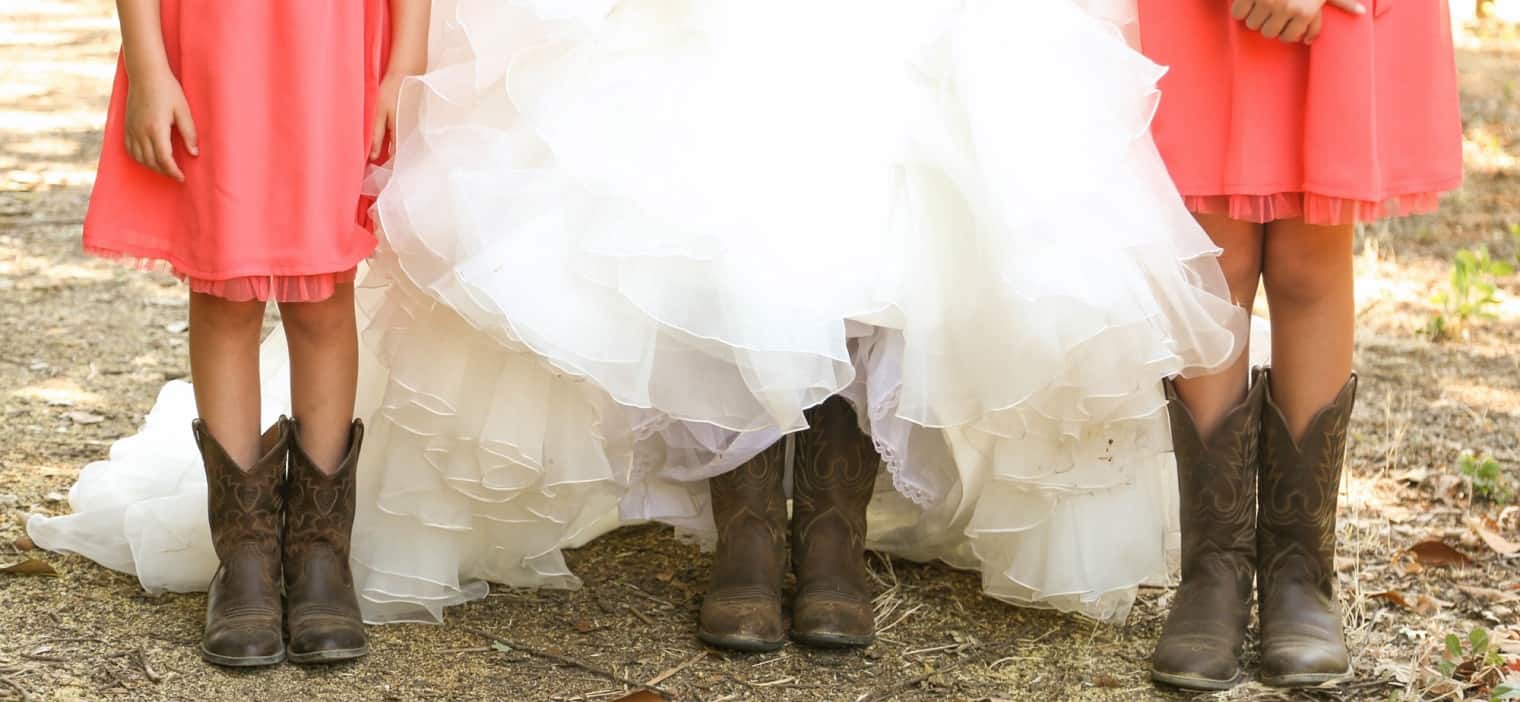 - Get yer boots on girl! We’ve got a whole article dedicated to wearing cowboy boots on your wedding day.