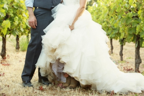 Another great vineyard wedding from Drozian Photoworks captured in California. We simply love the cowboy boot look and the cute blue bird cake toppers!