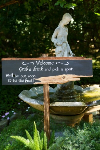 “Naomi and Bryan chose to decorate their venue with lots of cute little signs and had the most adorable blue birds on their cake. She also gave the cutest little birds-nest necklaces to her flower girls to match! Naomi had the perfect fairy-tale dress to fit the setting, and we absolutely loved the cowboy boots that she wore with it.”