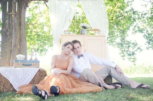 We love vintage, so when we came across this vintage engagement session we had to share it with you all! Jenny Haas did a fabulous job capturing Natalie and Ked! Natalie and Ked have the cutest outfits! Love the bow-tie! We can’t get enough of furniture outside! This dresser really brings the shoot to a whole new level of cuteness! What a gorgeous umbrella! We want one! LOVE these red shoes! Wonder if they come in our size…? Thanks Jenny Haas for sharing this with us!Gallery