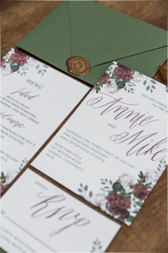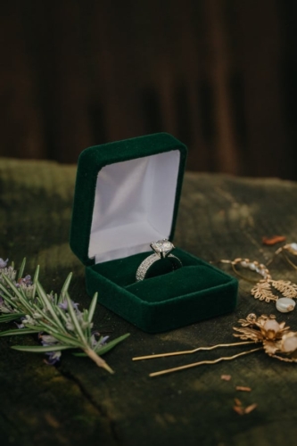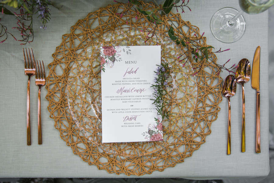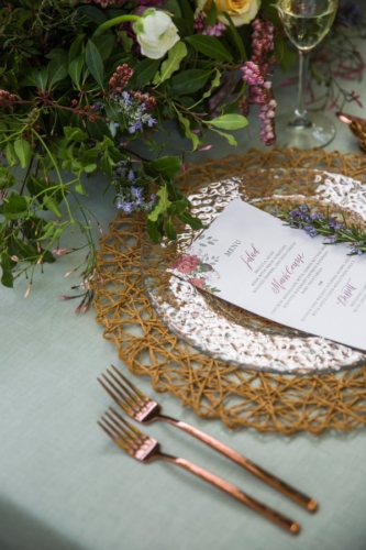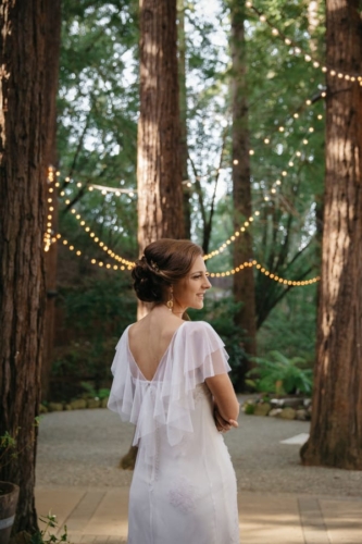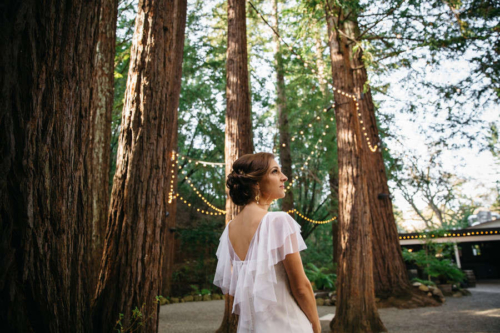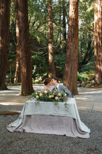 Photographer’s Comments: “In this styled shoot, I wanted to portrait California’s forest natural beauty while adding in elements of romance and intimacy. This shoot was full of love and unforgettable moments. I had some incredibly talented vendors collaborating with me to make all of these beautiful details shine. Together we were able to create a very unique and magical ambiance. Thanks to my friend and fellow photographer Amanda (Amanda Aceves Photography) for assisting me during the shoot. “I was lucky to have the opportunity to photograph this wedding inspiration styled shoot at Deer Park Villa, a beautiful venue surrounded by a redwood forest. I wanted nature to do the talking and provide an intimate but yet inviting and romantic setting. One of my goals was to create a harmony between the rich forest colors while integrating pale yellows, dusty rose colors and a hint of copper for a subtle contrast. “My real married models, Annie and Mike, were perfect for my vision. I am in love with Annie’s smile and Mike’s sense of humor. They were so much fun to be around. The modern attire of the groom matched the lace vintage gown by Amy-Jo Tatum Bridal. Our hair & makeup artist Taylor Gallanter applied subtle earthy tones to make her eyes pop while bringing out her natural features. This girl is incredibly talented in hair and makeup artistry. The final touch was the jewelry by Lietofiore, love at first sight. Unique handmade pieces that matched my vision perfectly. The simple and joyful florals were designed by Studio Wildflower. The custom wedding invitation suite Nib & Flow crafted for this styled shoot incorporated bold yet timeless elegant details to create a unique look. Pale rose tones accompanied by earthy greens made for a romantic feel, so we paired that with wood for some juxtaposition. “All vendors did such an incredible job pulling every detail together, and Deer Park Villa and its surroundings served as the perfect backdrop for this natural and romantic shoot. I thank everyone who helped bring my vision to life.”Gallery