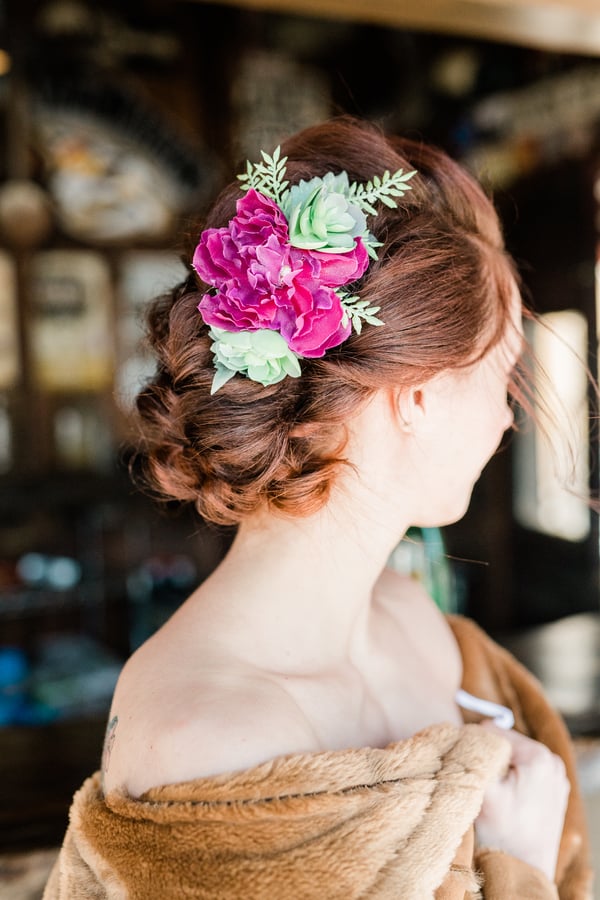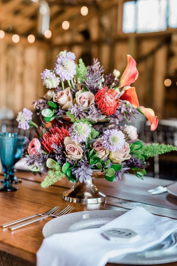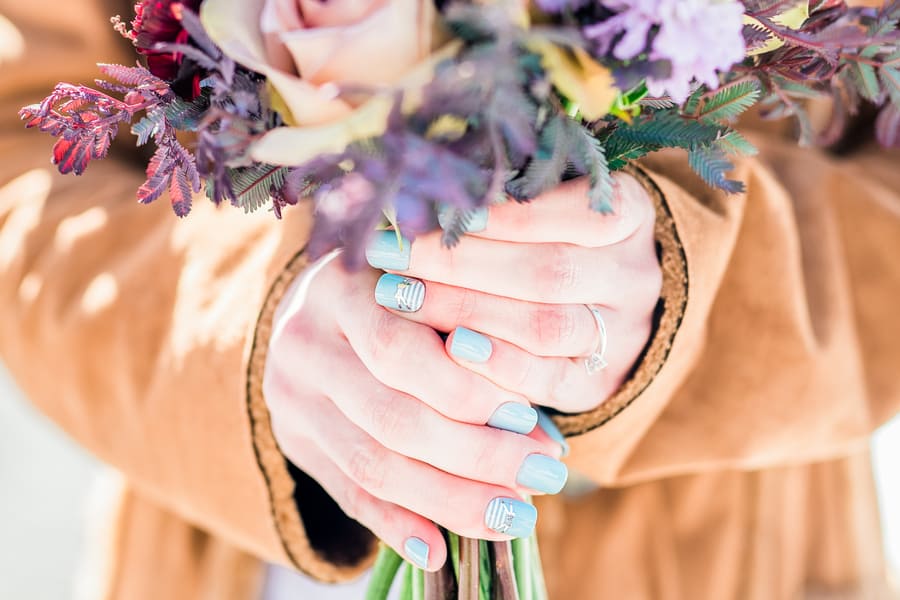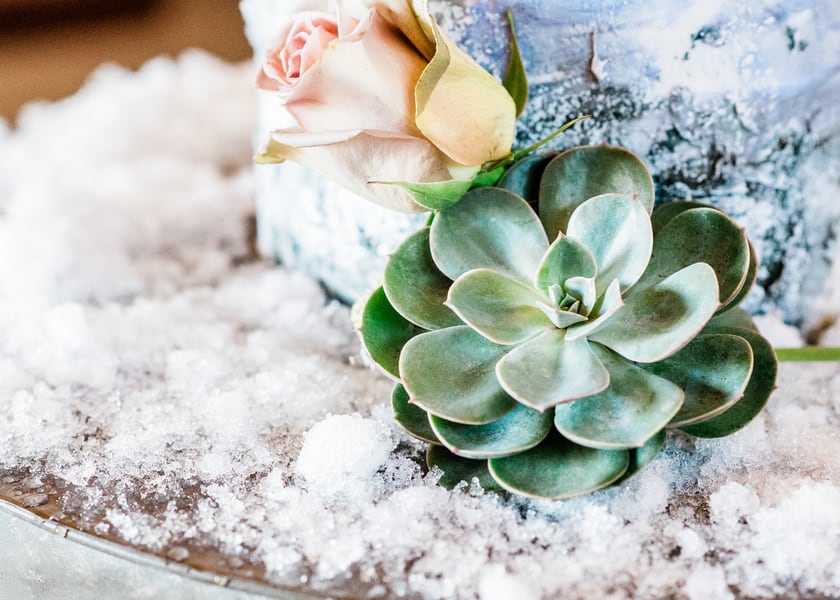 Photographer’s Remarks: “The snow in March, the barn reception hall at a beautiful country venue, the woods behind the gazebo which is made of the lumber on the property are just right combination to complete this New England wedding look. “We wanted to create an elegant barn wedding without too much fuzz. We used the organic elements like unknown greenery , succulent directly out of the pot gave the earthy feel while the blue glassware and textured cake gave the modern twist. “The colors of gray, blue are perfect for earthy and modern tone while the glory of gold and purple shine through dull March winter in New England. We started shooting at 1PM due to some delayed situation which no photographer would like that! But we pulled it through. “The fun fact of this venue is my favorite part — it features an outdoor stone pizza oven and chef on site to service couples and guests in a casual, relaxing environment. “The owner’s son Mike moved back to Massachusetts from Tennessee a few years back. He used his collections over the years as decor to complete this rustic, country, cozy outdoor space called Whisky Kitchen. Fresh gourmet pizza and drinks, Who can say ‘NO’ to that?”Gallery
