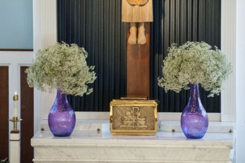 What an elegant celebration. While the tree is a standout, I can’t stop looking at the baby’s breath in the purple vases, such a simple, beautiful detail.