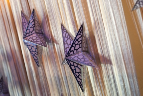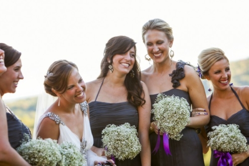 I am not a huge fan of the celestial theme because it reminds me of a phase my mom went through in the early 90’s when everything was celestial: table clothes, candles, vases, and even matching navy blue walls. Purple can be an overwhleming color to choose for a wedding. However, the following celestial themed wedding is subtle enough without going over board. The purple ribbon with white baby’s breath and grey bridesmaids dresses are well matched. Also, I absolutely love the stunning giant manzanita tree with crystals and candles they used for the place card table centerpiece.
