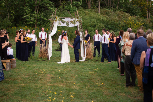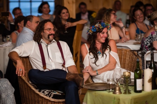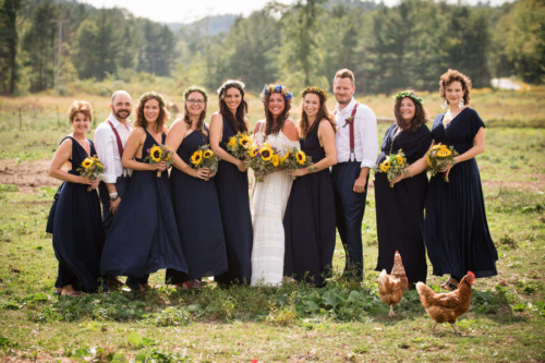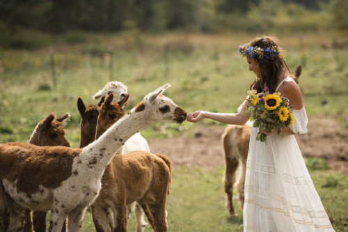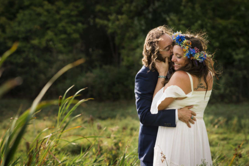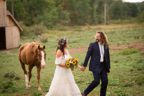 Photographer’s Comments: “Nicole and David’s wedding stands apart from any traditional wedding day, in the best way possible! It started with a one-of-a-kind space. “Nestled in the foothills of the Adirondacks, it has been in the bride’s family for nearly 50 years. With multiple barns (one that was built just for their wedding) on a 65-acre parcel, it is an artists’ colony, animal sanctuary and organic farm. “Nicole and David set the tone for the day, which was lots of live music and a relaxed boho vibe. Animals freely roamed the property. Guests were handed mini instruments to play while the couple walked down the aisle. “The meals were vegan and the eclectic mix of tableware was all handpicked. Books, flowers and handmade trinkets (like Origami) were fun surprises on various tables. “It was truly unique, fun, and free-spirited, which perfectly matches Nicole and David’s warmth and beauty!”Gallery