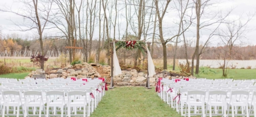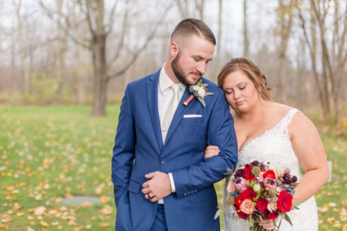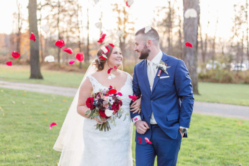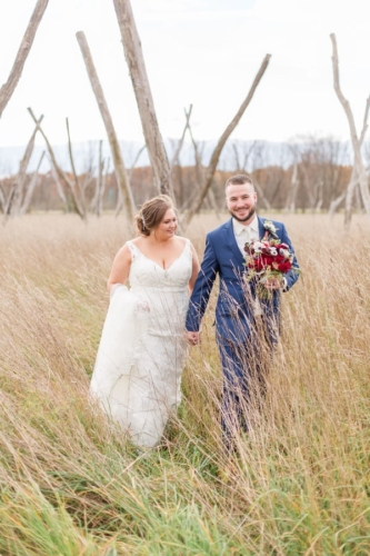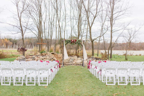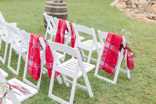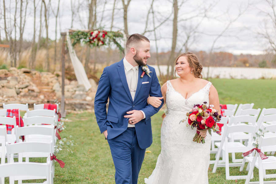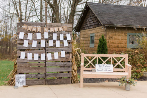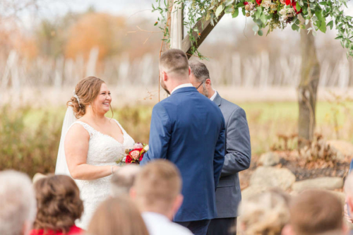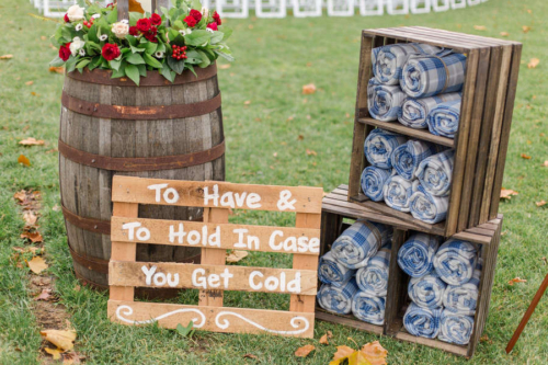 Nicole promised to always laugh with him and bring Jesse joy, and Jesse promised to always put her first, even during hunting season. Together they promised to love one another unconditionally and always share the ice cream and pizza rolls.Nicole and Jesse made their private vows under the final falling leaves of fall. The wind swirling around Old Stonegate Farms, but everything coming to a sudden hush when they exchanged their letters. The couple decided on a unique guest bench, for their friends and family to sign, and provided blankets and hot chocolate to keep them warm during the ceremony.Gallery