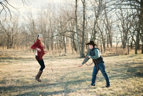 Have you seen this cow video? Being an animal lover, I absolutely fell in love with the curious nature of the cows. When I saw today’s sweet Oklahoma Ranch engagement shoot it reminded me exactly of the silly video below – curious cows wander over to share in Clayton and Brittany’s lovely engagement photo shoot!Oklahoma Ranch Engagement Shoot