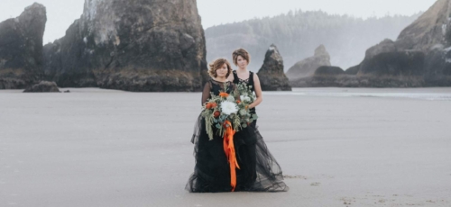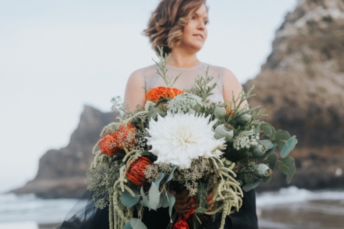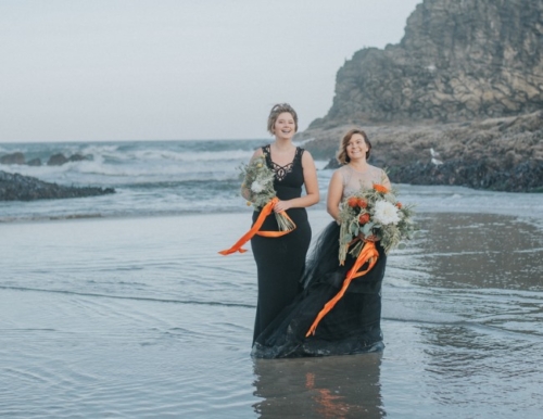 Not every bride or bridesmaid is dressed in traditional white. With Autumn season in its infancy, we thought what a perfect time to showcase an ethereal and spiritual side to the eclipse weekend from this past August. Dramatic tidal flows, incredible sea life, and landscapes of the Oregon Coast highlight how a bride can still look classy and beautiful when deciding to be bold on her wedding day.