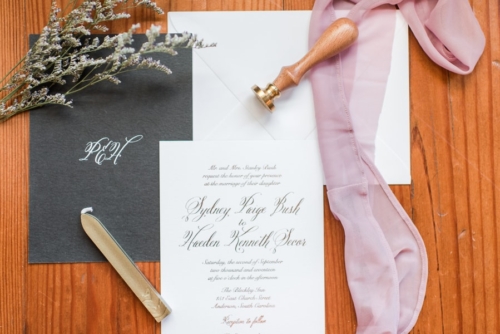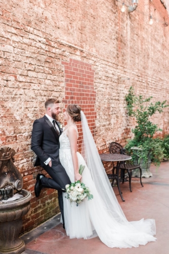 Photographer’s Comments: “Paige and Haeden celebrated their special day at the Bleckley Inn in downtown Anderson, South Carolina and it was one of my favorite wedding venues I have ever photographed! “With everything taking place in one location it was super convenient! From their Bridal Suites overlooking the Courtyard where their ceremony took place and the Carriage House where their reception was held to the the Inn’s beautiful alleyways lined with string lights and plants … everything was so perfect! “During our time with Paige and Haeden during their Bride and Groom portraits they shared their love for the venue. They told us that the first time they ever visited the Bleckley Inn together they knew that this was where they would want their wedding one-day. And I’m so glad it all worked out that way! We even recreated a photo from that first visit. “These two also picked out some of the most beautiful wedding details. You can tell that Paige and Haeden, as well as their family and friends made sure this day was perfect in every way. One of the most memorable details for me was actually not a detail used for the ceremony or the reception but just something of importance that Paige brought along for getting ready photos … it was a basket filled with all the dried flowers that Haeden had ever given to her! Seriously just the sweetest thing!! “And I can’t forget one of my favorite moments of the day … watching Haeden and Paige’s emotional reaction when they saw each other for the first time during the ceremony! These two have such a special connection and there was nothing I loved more than getting to witness their joy while they celebrated amongst their closest family and friends! “You see their families are what originally brought them together. Paige and Haeden’s families were good friends, and eventually these get-togethers led to a mutual crush and then that mutual crush led to a very happy, in love, and now MARRIED Mr. & Mrs.”Gallery