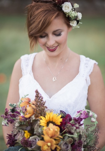 Remarks from Photographer – “Stacey from the Tangled Grapevine not only did all of the floral work for the shoot, she also styled it. The models are Amanda and Josh, a real life couple who were married in April, 2016. The venue was a local farm and pumpkin patch called Silver Bell Farm in . The farm even provided us with yummy apple cider donuts!”