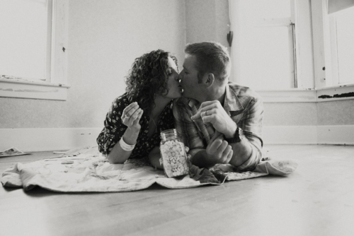 We wanted to end this week with a sweet love session by Dani Stephenson. Taken in an empty room, these photos are inspired by vintage valentines. Super cute heart confetti…love! Rachael brought along all of her and Davey’s old valentines, what a cute idea! We love this banner, and the paper heart in the background! So sweet! Thanks Dani for sharing these photos. We hope everyone has a fabulous weekend!Gallery