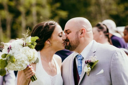 Photographer’s Comments: “The bride’s crew started their day in the custom bridal suite with a smorgasbord of goodies and mimosas to get the party started. The bride’s hair and makeup team did an amazing job of getting everyone ready and Rachael looked stunning when I arrived (even before she put her dress on). My team and I gathered the details and set out to photograph them in the hot sun, while the girls relaxed in the air-conditioned bridal suite. “The couple’s Spring Brookstom Creek Wedding ceremony was just perfection. Their friend served as the officiant, which is always a wonderful honor. Of course, he was just as excited about this union as the couple, and the result was he may have missed a page or two in his script. The best part though is it never matters when something is forgotten. It just means you get married faster. For Rachael and Josh, this was perfect and they got to skip ahead to their first kiss as husband and wife.”Gallery