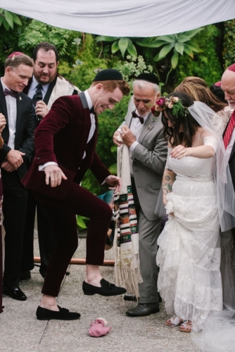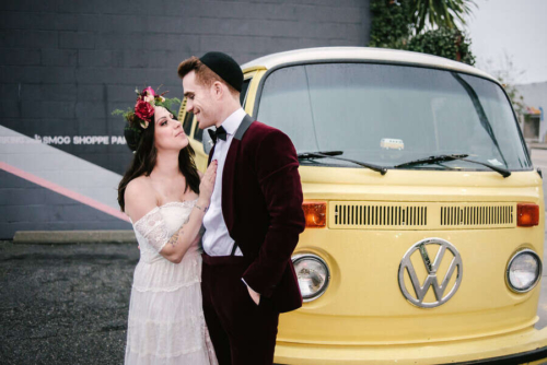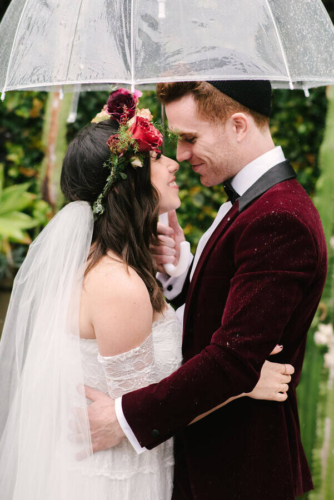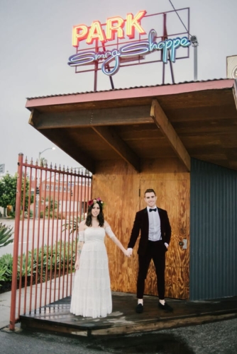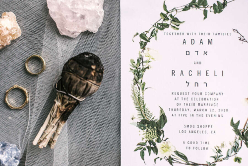 Photographer’s Comments: “Racheli & Adam have a great story; they met in June, 2016. Racheli was 8 months out of treatment for Hodgkin’s Lymphoma & Adam had just started his pursuit of an on-camera acting career. “The night they met, the two talked about everything under the sun & continued their dialogue under the sun at Venice Beach just 2 days later. Less than two years later, they were married. Racheli’s Jewish faith is very important to her & without being asked, Adam converted to Judaism. “The Smog Shoppe played a very significant role in showcasing the natural style of the wedding; the couple wanted it to feel comfortable & different; how they live everyday. “They had many unique details like unicorn horns for the flower girls, a personalized Lagunitas IPA and Sage bundle place cards that led guests to tables labeled as affirmations like loved & radiant. “Racheli vlogged her cancer journey on her YouTube channel, Radiant Racheli. It also rained in LA on their wedding day, which was a rare occurrence!”Gallery