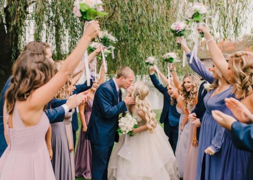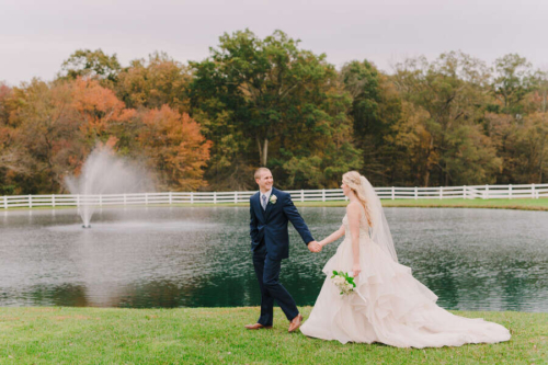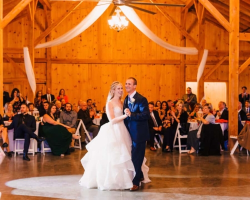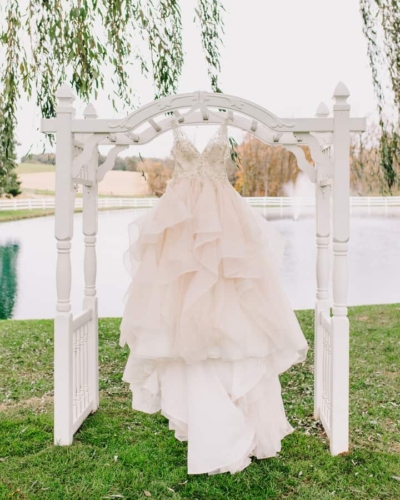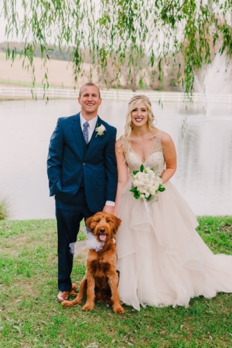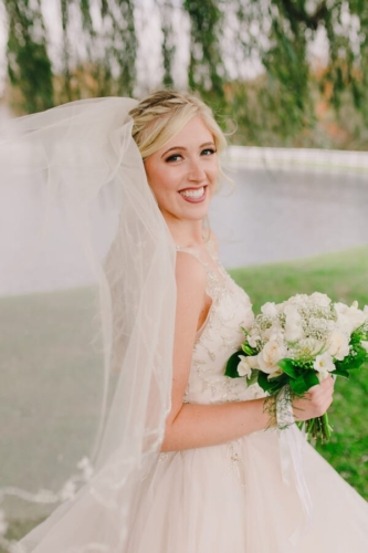 Q1: Tell us about your wedding! “Our favorite thing about the venue was the relaxed feel about having the ceremony outside under the willow trees by the water and the reception inside the warm, cozy barn. My husband and I are laid-back, easy-going people and we wanted our wedding to reflect that. We were drawn to a cool color scheme for the ceremony and then we filled the barn with fall colors that really popped for the reception.” Q2: Let’s talk wedding decor “The willow trees gave us everything we needed for the ceremony outside! They were absolutely gorgeous so we knew we didn’t have to add much. For the reception, we brought lots of pumpkins, leaves and florals and my fabulous Aunts turned the barn into a shabby-chic autumn dream. It was a group effort fueled by many creative minds and lots of love!” Q3: What were the florals like in your wedding? “My amazing mom did all of the florals! As soon as we booked our venue for October we knew we wanted big, colorful arrangements in bright orange pumpkins for centerpieces. My mom collected lots of cool vases so she had plenty arrangements to sprinkle around the barn. My bridesmaids carried pastel bouquets with long ribbons that matched the cool color scheme of the ceremony.” Q4: Did you personalize the day in any way (food trucks, guest entertainment etc.)? “Our wedding was only five days before Halloween, so we had a Trick-or-Treat table for our guests to take home a goodie bag full of candy. We also wanted to incorporate our love for Maryland’s Eastern Shore so we had oysters being shucked on the patio for cocktail hour, along with crab soup and oranges crushes at the bar.” Q5: Let’s talk wedding fashion “I tried on lots of different dresses to figure out what I liked. I knew I wanted something off-white with beading and straps so I would be comfortable while dancing. When I tried on my dress for the first time, I knew it was the one! The blush color and layers were whimsical and fun and I fell in love with it instantly. Gordon got the inspiration for his navy suit from a friend’s wedding and we knew it would compliment our colors nicely.” Q6: How did you meet? “We met in 2013 when we both moved to Ocean City, Maryland for the summer and ended up being next-door neighbors on 119th Street. In December of 2016, we were home in Maryland for Christmas and decided to drive to OC for lunch at one of our favorite restaurants, Crab Bag. Right before we got to Crab Bag, Gordon pulled onto 119th Street and said he wanted to see the renovations that were made to our old summer beach houses. He sneakily got me up onto the porch where we first met and proposed! It caught me completely by surprise and was a perfect execution on his part.” Q7: What was the most anticipated or special moment of your wedding day? “What mattered the most to us was that all of our favorite people were there to help us celebrate. While sitting at the sweetheart table for dinner, we were able to take a moment to look around and appreciate all of the wonderful people in our lives who were there to support us. The feeling was overwhelming and so special.” Q8: Do you have any wedding planning or marriage advice that you’d like to share with other couples planning their day? “It’s easy to get overwhelmed by all the fancy decor and details you see online and in wedding magazines. Guests hardly even notice all the little details that you might think are so essential. Don’t sweat the small stuff and just make sure you are enjoying every step of the planning process because it flies by. It’s going to be the best day of your life no matter what happens!”Gallery