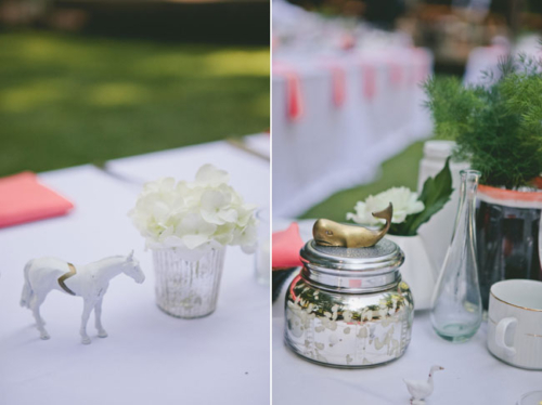 “We named our 5 long tables after flowers that were taped to the seating chart with washi tape. Guests could find their seat by looking for the table that was decorated by that flower. Some of the flowers were chosen for a significant reason, like Gardenias for the table with the mother of the groom because they are her favorite, but others were just chosen because I think they’re pretty.”