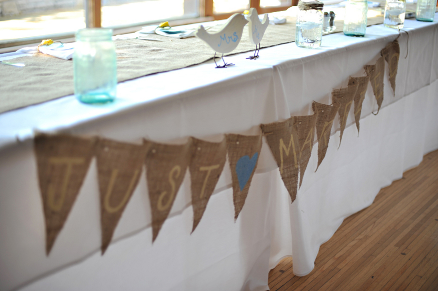 “I did all of the graphic design for the invitations, menus and cookie take-away bags. We also made all the flower arrangements, table runners, bunting, napkin rings, table centrepieces, mason jars and cake toppers. (It would not have been possible without Pinterest!) I must say that another DIY hit of the wedding was the tradition of the Italian cookie table, all my aunts and cousins made dozens upon dozens of cookies to display at our wedding. Each project brought the wedding to life and made the day special and personal.”