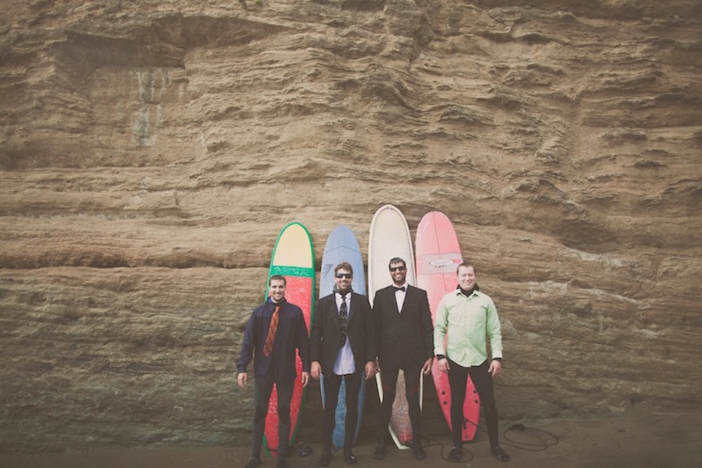 Today’s wedding is the perfect way to start this sunny weekend! The groom definitely knows how to start his wedding day off with a bang—surfing with his groomsmen. Anna and Brian’s wedding was simple with pies and drinks for the reception and the natural beauty of the beach as their backdrop. James Besser did a fabulous job capturing every moment!