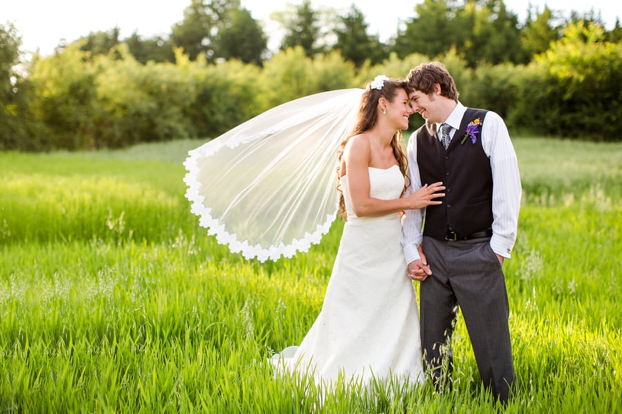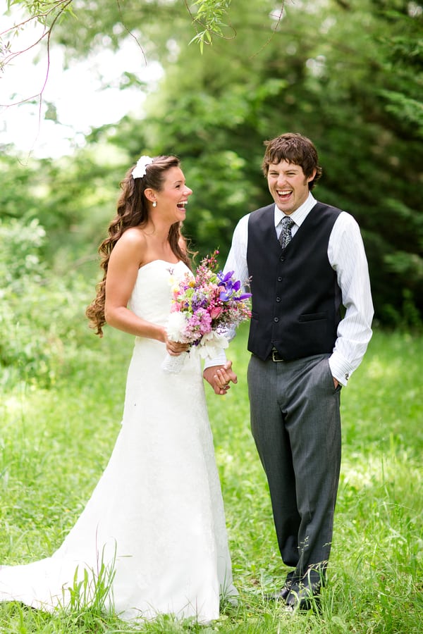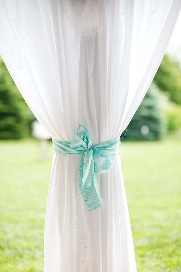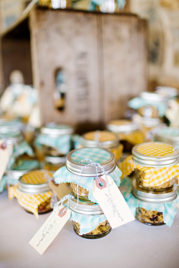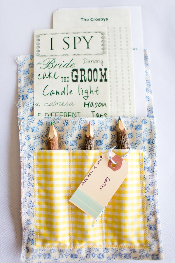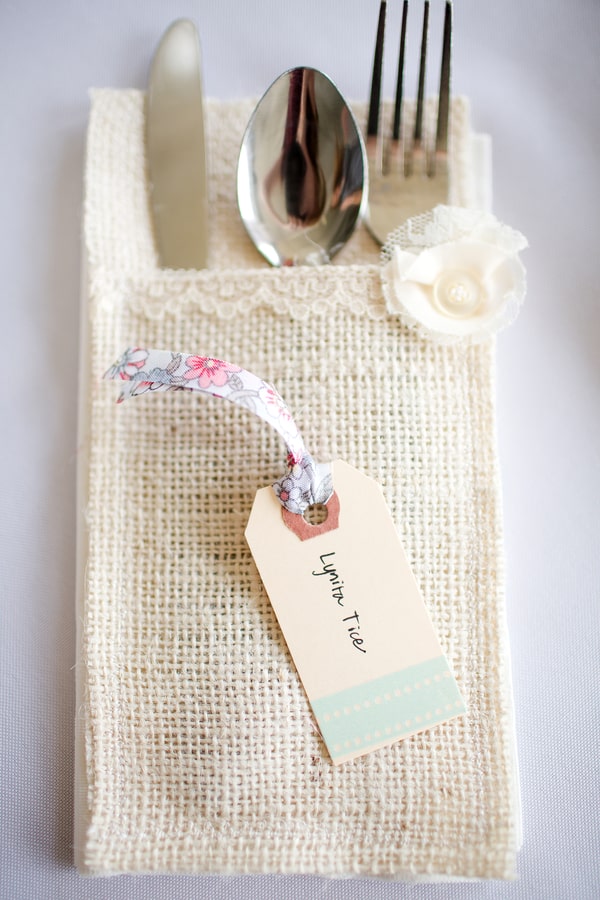 This wedding is a DIY dream! Rebecca and Hunter were on a budget, so she decided to take decorating into her own hands. Rebecca learned how to sew just for her special day — she made utensil holders for every guest.