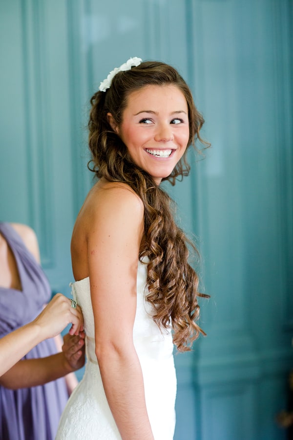 That altar is spectacular! I love the wreaths and flowers. I love that she learned to sew to make her dream wedding a reality. That is the ideal bride 🙂