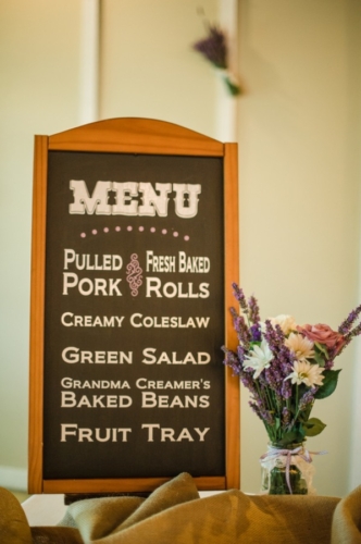 The chalkboard menu below has got to be one of my favorite wedding menus of all time! As the chalkboard sign in the photo indicates: