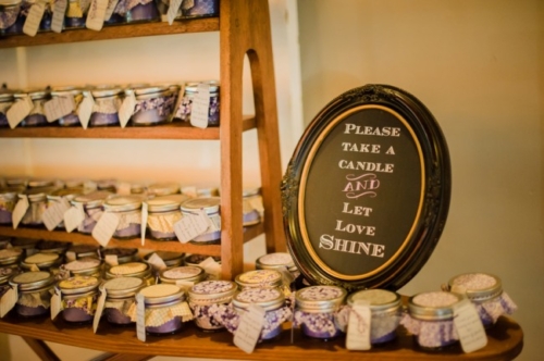For a lavender themed wedding (such as this) these mason jar lavender candle favors are a great alternative to food favors. Plus, candles are the type of favor that your guests can take home and use after your wedding day is over.