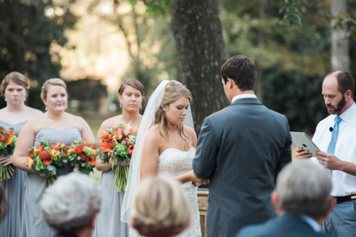 “The wedding of their dreams was still held at Tanlgewood Plantation in late October, and was every bit as beautiful as you can imagine! Tanglewood is a renovated plantation home nestled on a beautiful property with Oaks, old outbuildings and barns.