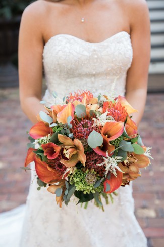 Fall is still a little ways away, but that doesn’t mean we have to deprive ourselves of the wonderful orange and brown hues that this season offers. And, if you’re planning a fall wedding for 2017 then take inspiration from the calla lillies, centerpiece, and other decor accessories from today’s wedding!