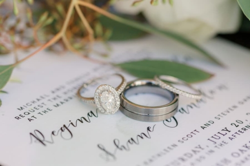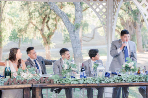 Photographer’s Comments: “Regina and Shane had the perfect backdrop for their big day. From the gorgeous barn doors to the fresh greenery leading to their sweet altar beneath the trees, Whitney captured every sweet detail of this Spanish Oaks Ranch Wedding! “Regina and Shane first met as freshmen at Cal Poly San Luis Obispo in the dorms, but didn’t get to know each other well until their final years at school when they lived across the street from one another. With the excuse of a mutual best friend to hang out with, they spent more time together and sparks flew! “After four blissful years together, Regina was surprised by Shane’s incredibly romantic proposal. ‘It was very intimate and small, just him and I. We went to visit his parents in Torrance, California and I thought we were going there to celebrate his birthday (his birthday was the weekend after).’ “Shane stepped out to the garage to grab a drink when he was really taking moment to compose himself before he popping the question! ‘I ended up going out to the garage to check in on him and he had candles lit, pictures of our four years together, wine, dessert, everything romantically set up. He got down on one knee and asked me to marry him. Of course I said yes’ “These two lovebirds have much in common. From shared values to big life and career goals, they knew they had found the perfect life partner in one another. Thank you so much to Regina and Shane for including Figlewicz Photography in your beautiful day at Spanish Oaks Ranch! It was a fun and family-filled celebration that we were thrilled to capture!”
